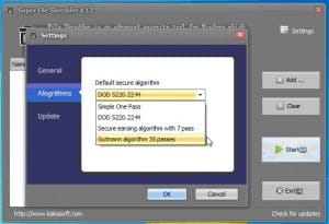 - Klik pada Settings > Algorthms untuk mengubah metode algoritma penghapusan file. Kamu bisa secara mudah mengatur menu konteks dengan mengklik Settings > General. Untuk meng-update aplikasi, klik Settings > Update.